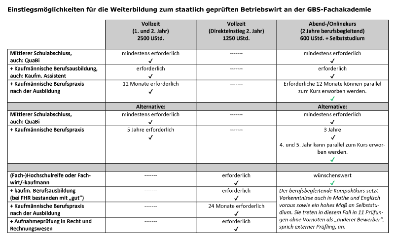 zum Abendkurs erworben werden, sodass der Einstieg bereits